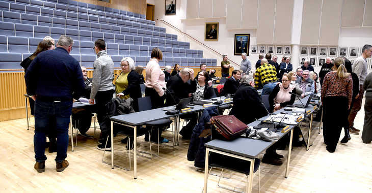 Valtuustokeskusten aikana ryhmät pitivät myös neuvottelutaukoja. Äänestysjärjestys määräytyi niin, että ensin vastakkain olivat kaupunginhallituksen pohjaesitys, siis liputtaminen progressiivisella ja inklusiivisella pride-lipulla vastaan kokoomuksen ryhmän esitys liputuksesta Suomen lipulla. Suomen lippu voitti äänin 25—18. Tässä äänestyksessä ryhmät eivät pysyneet yhtenäisinä, vaan keskustan ja SDP:n valtuustoryhmän jäsenissä oli sekä pride-lipun että Suomen lipun äänestäjiä.