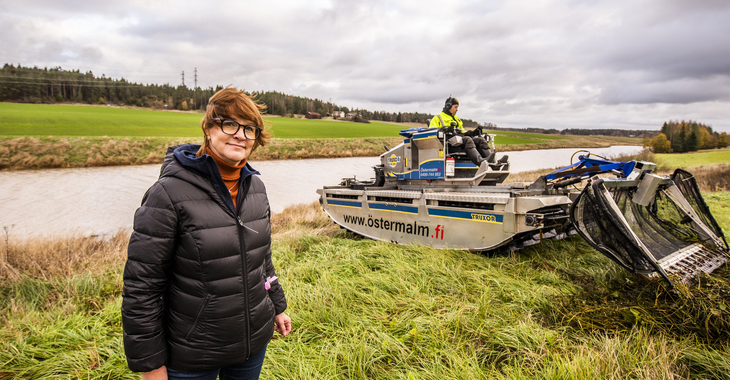—Jotain on pakko tehdä. Amfibiokone on tosi tarkka ja tehokas, varmistuksena alajuoksulla on vielä puomi, jotta kasvinpalaset saadaan talteen eikä kasvi leviä alajuoksulle. Toistaiseksi sitä ei ole Halistenkosken alapuolella tavattu, Sinikka Paulin kertoo.